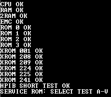 There are two HPIB tests, the Short Test and the Long Test. The Short test is started with ‘H’ and the Long test is started eith ‘I’. The Short test takes 488 ms (really) and the Long test takes a 2.5 seconds. If you allow the system to enter the BASIC environment, the tests are still available as follows: